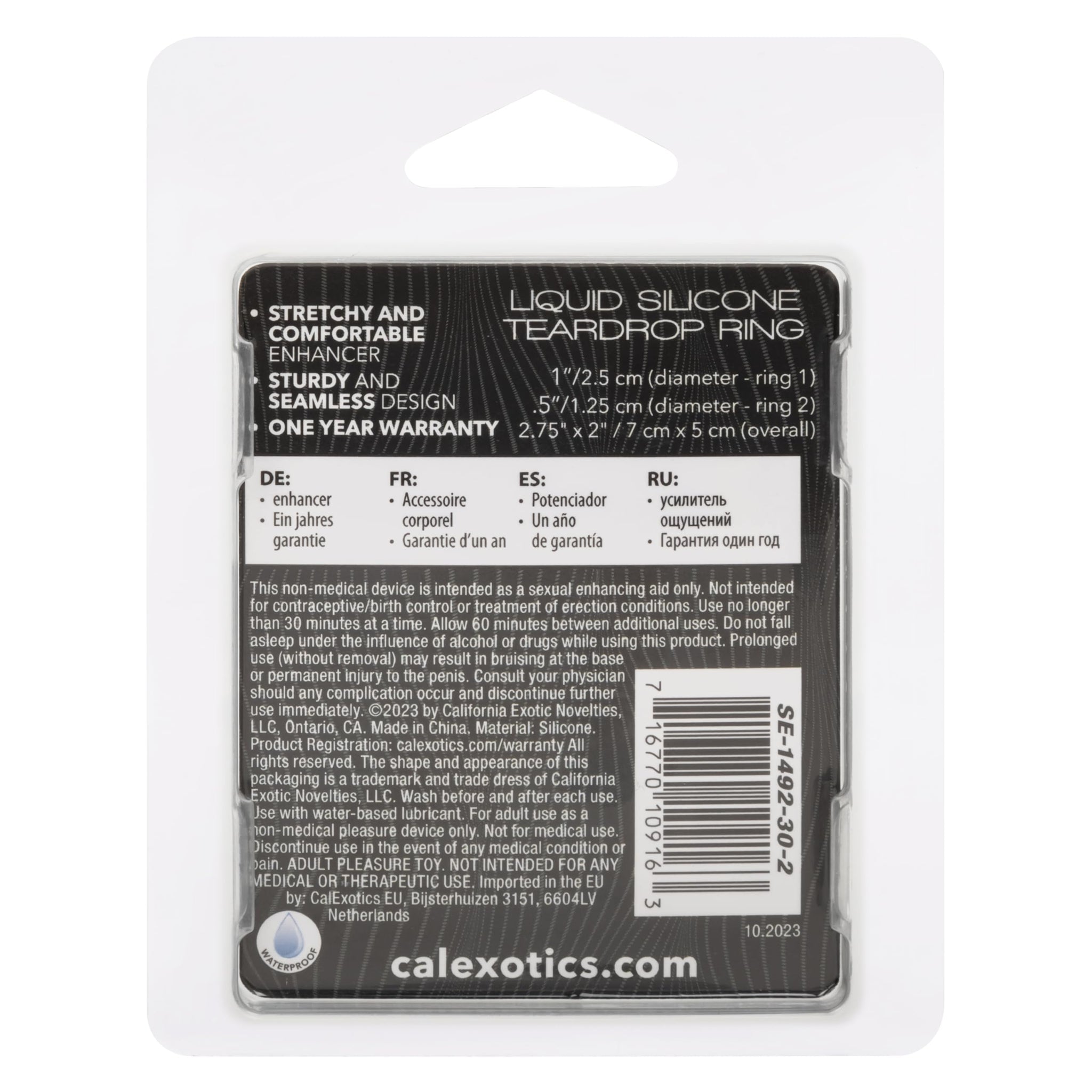 Q: What is the CalExotics Alpha Glow-in-The-Dark Liquid Silicone Teardrop Penis Ring?A: The CalExotics Alpha Glow-in-The-Dark Liquid Silicone Teardrop Penis Ring is a sexual wellness product designed for men. It features a built-in scrotum ring for added support and stimulation, enhancing pleasure during intimate moments.