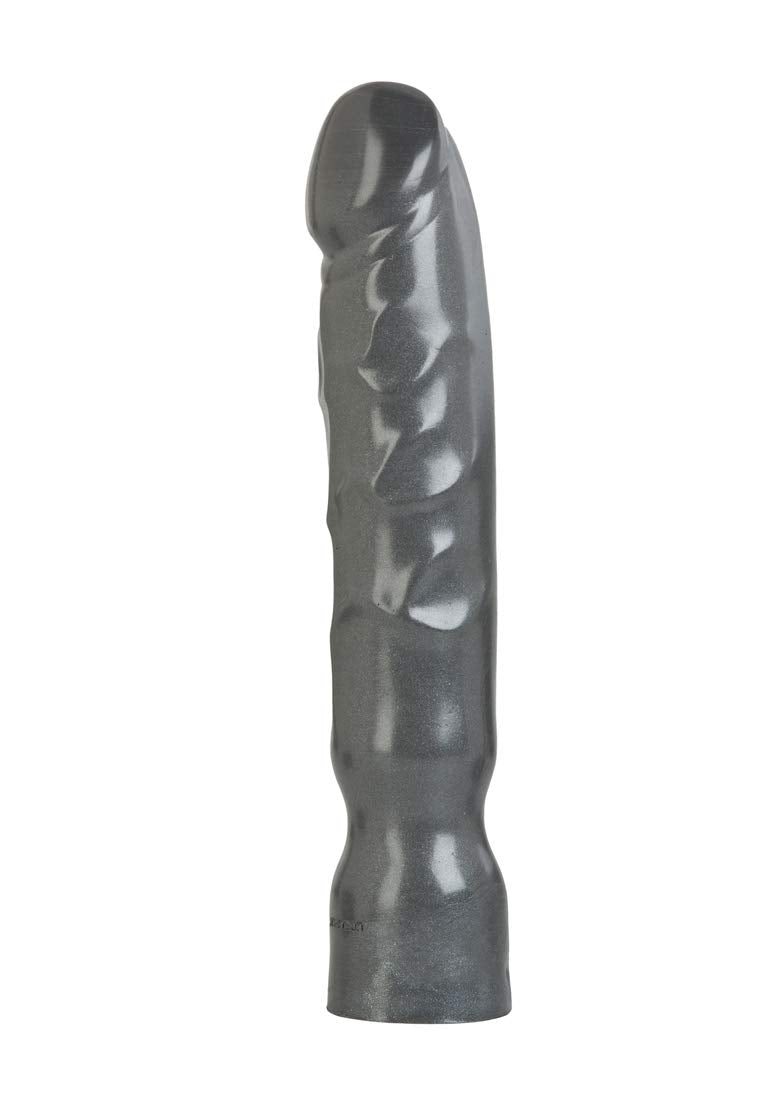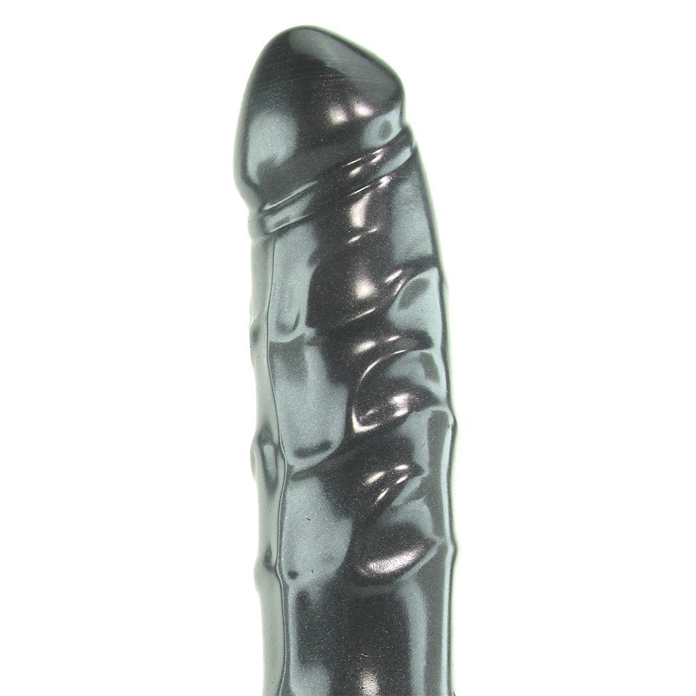This Cock Has An Insertable Length Of 9.8 In. And A 7.2 In. Girth. The Veiny Shaft And Curved Head Promise Intense Sensations While The Handle Base Offers Maneuverability. Made Of Gun Metal Gray Pvc Featuring The Antibacterial Sil-A-Gel.