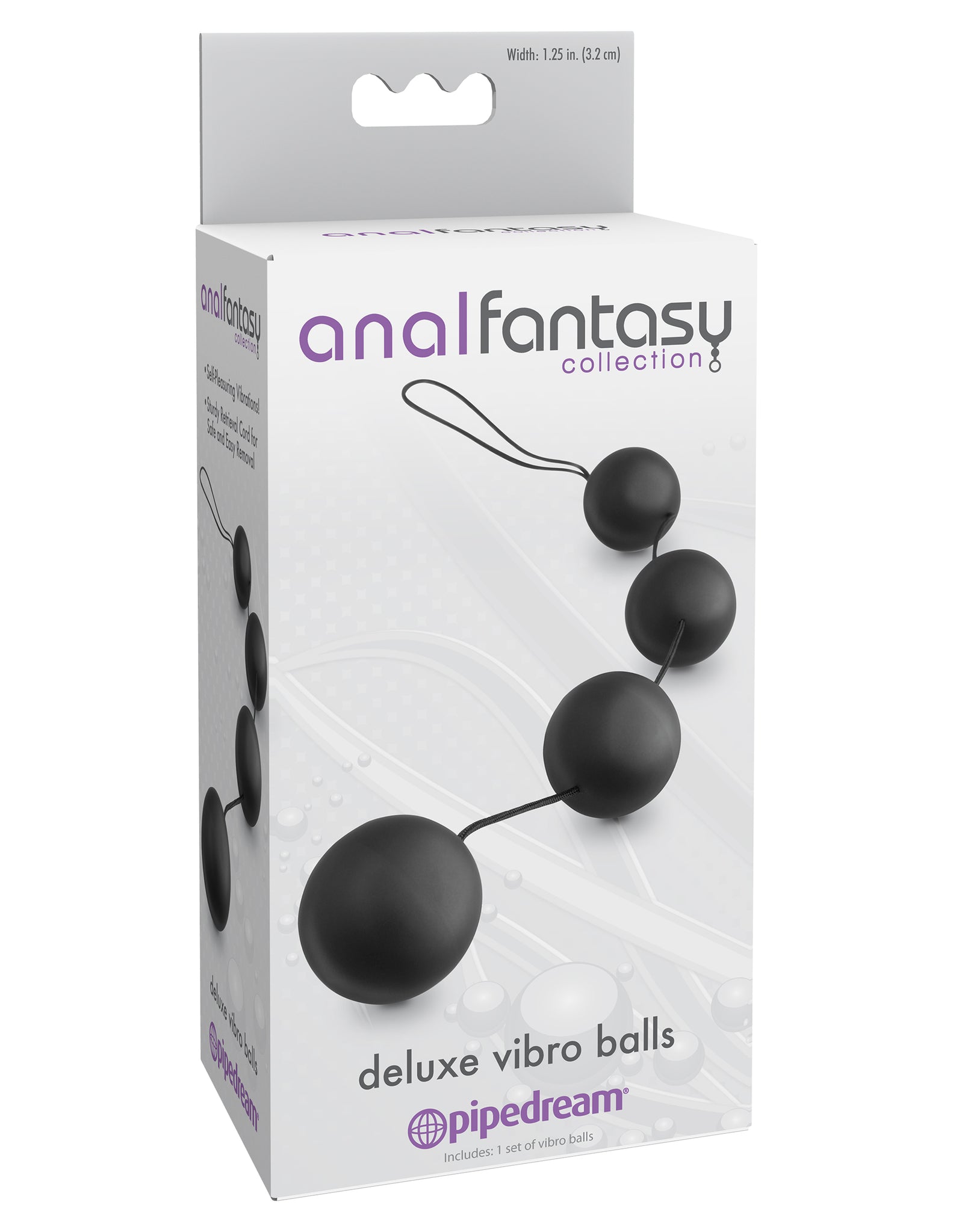 Q: What are the dimensions of the Anal Fantasy Collection Deluxe Vibro Balls?A: The Deluxe Vibro Balls have a diameter of 1.25 inches and an insertable length of 10.82 inches (27 cm).