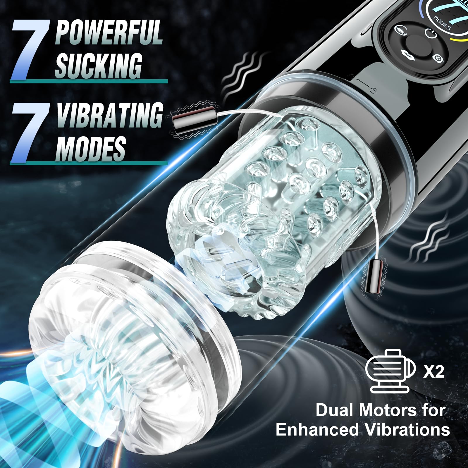 Automatic Male Masturbator Penis Pump, Male Sex Toys for Men Sex Toy Adult Toys Blowjob Sex Machine Pocket Pussy Male Stroker with 7 Sucking & Thrusting & Rotating & Vibrating & Licking LED Display
