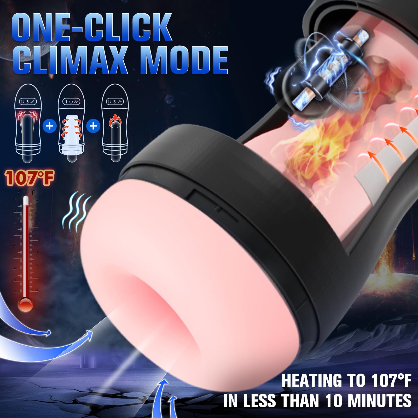 Q: How does the warming function work?A: The warming function simulates body temperature, reaching around 107°F, which enhances the overall experience by providing a more realistic feel.
