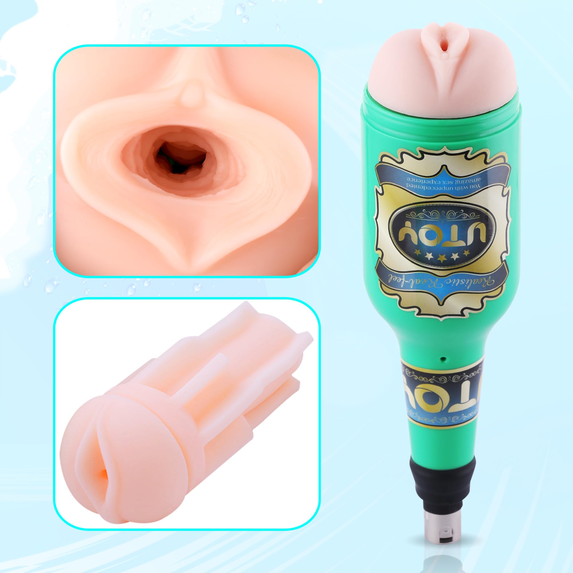 Q: What materials are the attachments made from?A: The dildo attachments are made from high-quality, body-safe materials, including realistic TPE for the masturbator, ensuring comfort and safety during use.