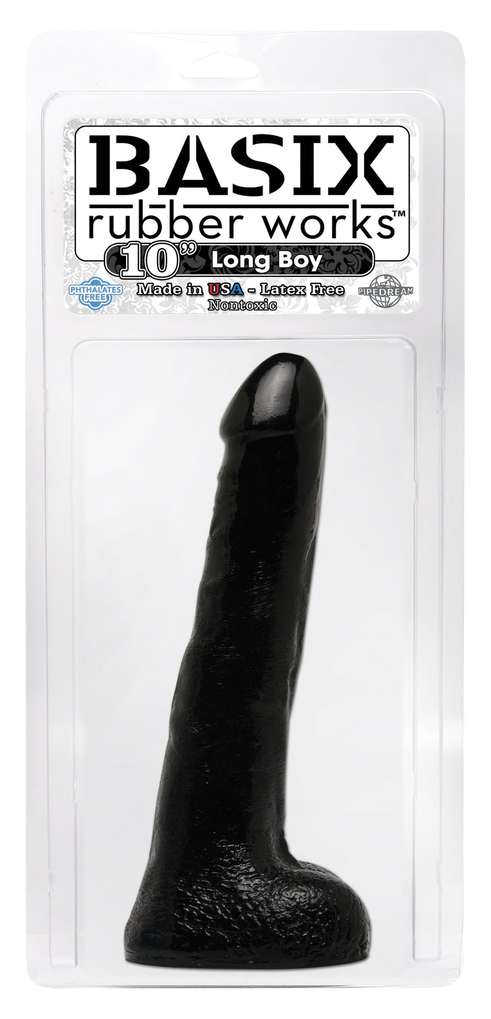 A: The Basix Rubber Works 10-Inch Long Boy is made from 100% American-made rubber that is phthalate-free and latex-free, making it safe for use.