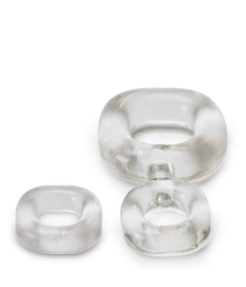 A: The Boner Kit (Clear) includes one square cockring with an attached ball stretcher and an additional loose ball stretcher.