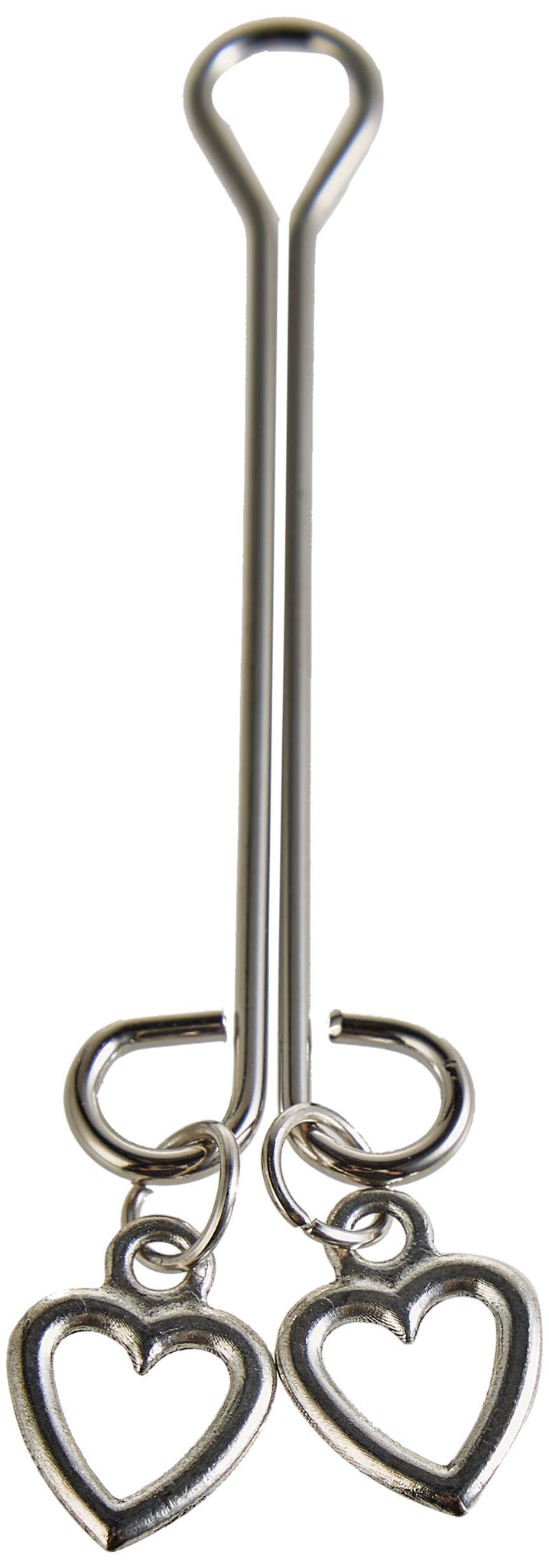 Adorn your intimate areas with this stylish, high quality clit clip complete with cute, heart-shaped charms. The sensation of the adornments tickling against the skin adds an extra pleasurable sensation while also acting as a playful surprise to a lover. Nickel free.