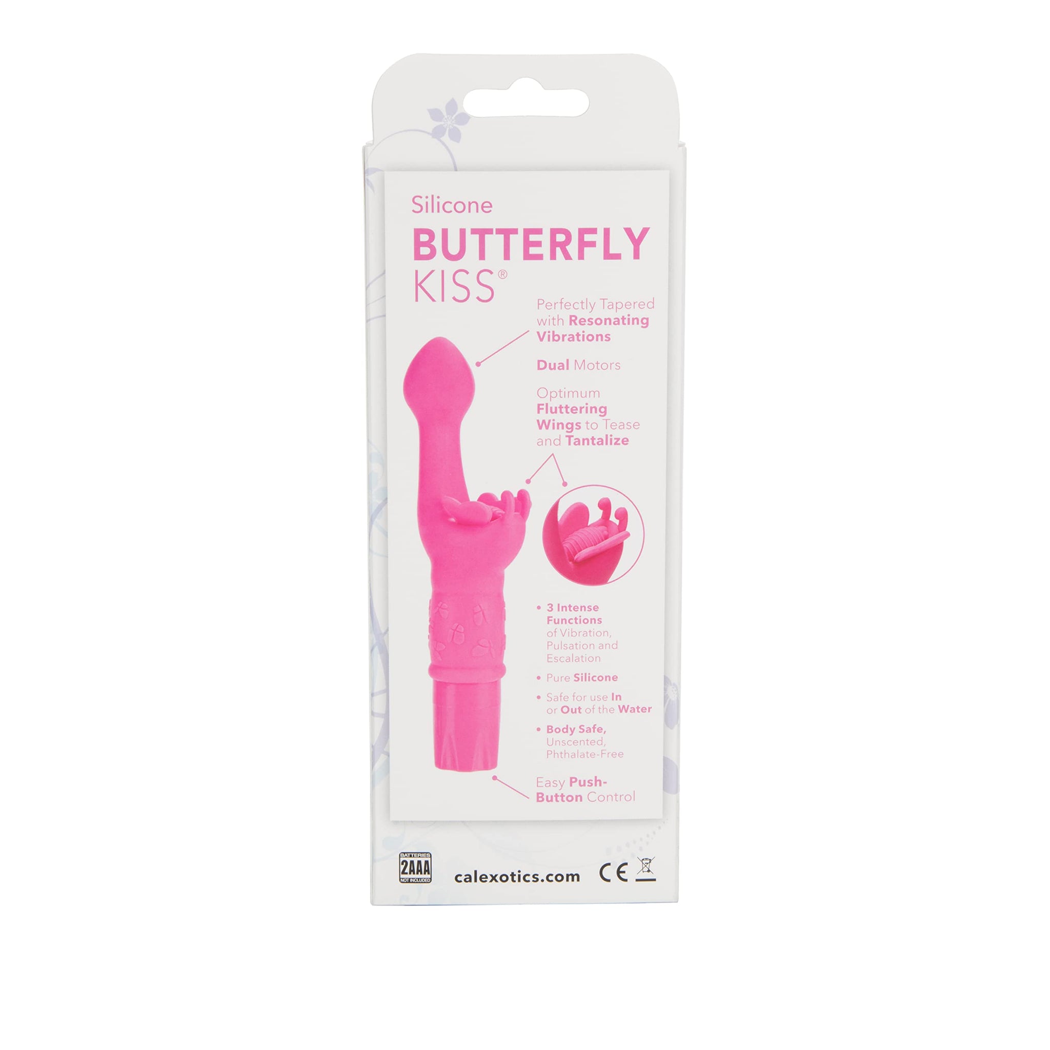 Q: What is the CalExotics Novelties Silicone Butterfly Kiss made of?A: The product does not specify a particular material, but it is designed for safety and comfort. Always check individual packaging for detailed material information.
