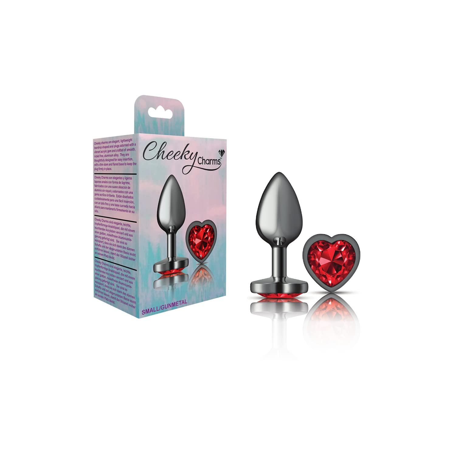 Cheeky Charms Heart Deep Red Small Gunmetal Butt Plug from Viben, is a collection of vibrant, seductive metal anal plugs, each show casing a beautiful Acrylic gem stone. These butt plugs are great for temperature play and anyone who wants to decorate thei