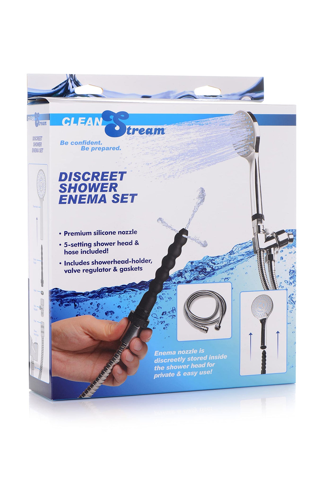 A: The included shower head features five settings and has a compartment to hide the silicone enema tip, making it easy to access when needed.