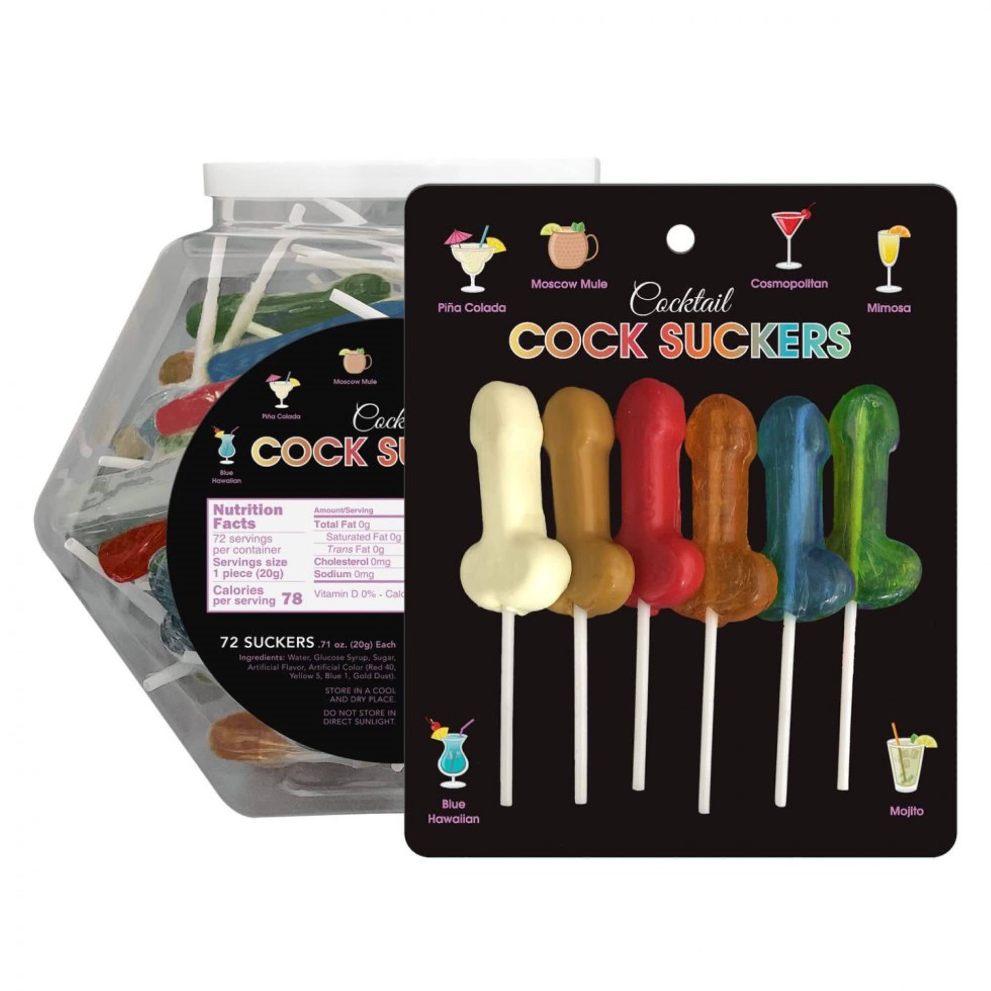 Cocktail Cock Suckers 72 Pieces Fishbowl Display from Kheper Games. Cocktail Cock Suckers Suck down your favorite drinks, with these fun cocktail flavored cock suckers. Each sucker is a different flavor including: Pina Colada, Moscow Mule, Cosmopolitan,