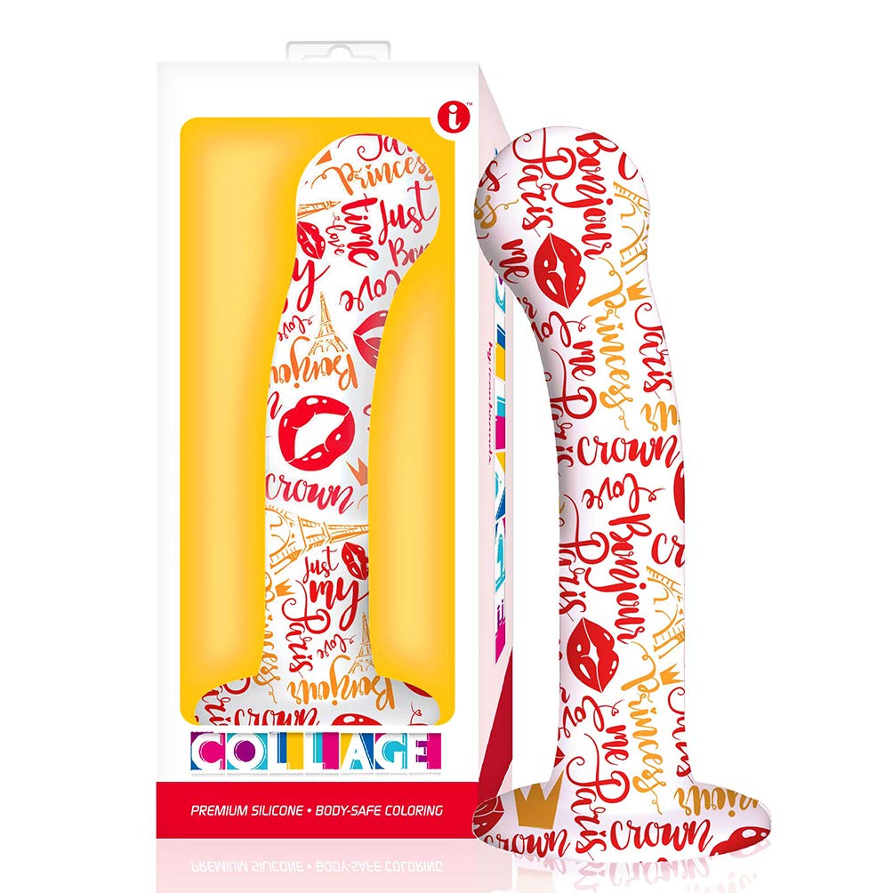 Collage I Remember Paris Dildo from Icon Brands. Premium Silicone lovey toys, with beautiful, body safe coloring. Each piece is hand crafted for your unique pleasure. Eye popping designs tattooed right onto the Silicone. Soft, silky and just the right siz