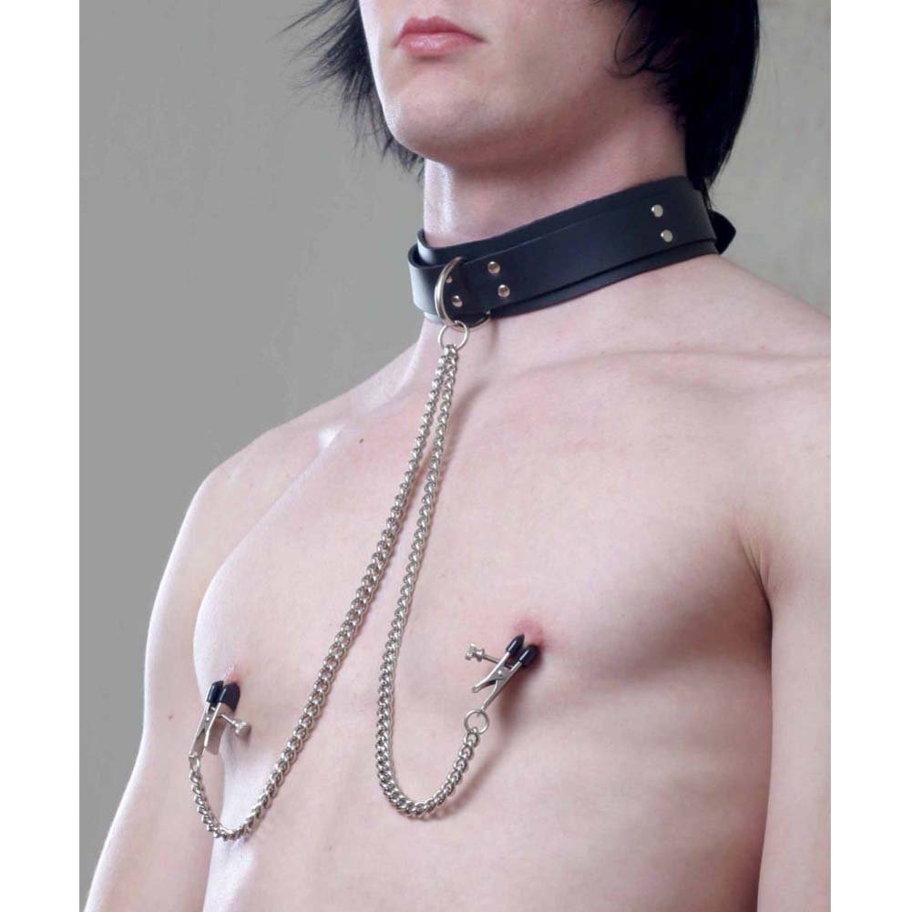 Spartacus Leather Collar to Nipple Clamps. Spartacus has combined our sturdy yet comfortable leather collar with a pair of our most popular clamps, to create an erotic toy designed for elegance, sensation, and control. Collared Clamps utility, grace and c