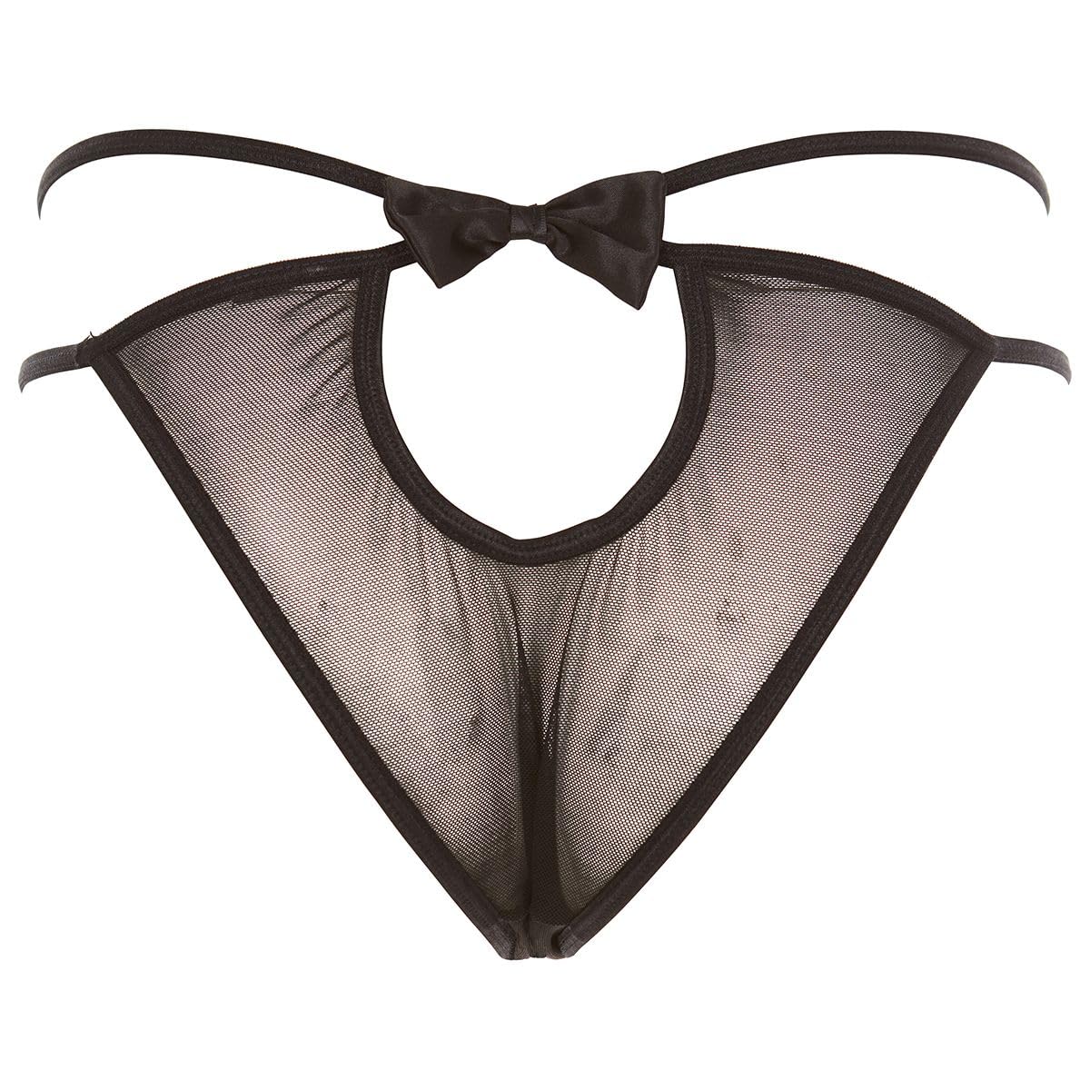 Make it an unforgettable night with this sexy crotchless panty. This racy style panty features a sexy cut-out and satin bows. Hand wash with cold water. Do not bleach. Line dry. Do not iron. Do not dry clean.