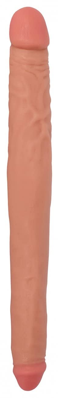 This double sided dong has 16 inches of super sexy shaft and 2 head sizes to please you! The ultra durable and body safe PVC is latex-and-phthalate-free, made right here in the USA. Each smooth cock head features realistic detailing and a veined shaft for more sensual stimulation. Use it with a partner or enjoy some size variety or DP action on your own. Low maintenance and easy to clean, the firm material has just a hint of give to make insertion easier. Curve Toys is known for their ultra-realistic bio-skin formula used to create the best dildos and adult toys in the world. They manufacture their adult replica products in the USA with only body-friendly, phthalate-free, and top-grade materials. Their proprietary blend of bio-skin is mixed in-house, making them a leader in sexual health. All products are inspected for superior functionality so that they represent the value, quality, and innovation from the factory to the bedroom. Staffed by experts with over 60 cumulative years in the adult manufacturing, Curve Toys is the perfect combination of passion, creativity and experience; in short, we know pleasure. Measurements: 16 inches in length, small head measures 1.25 inches in diameter, large head measures 1.5 inches in diameter. Material: PVC. Color: Flesh