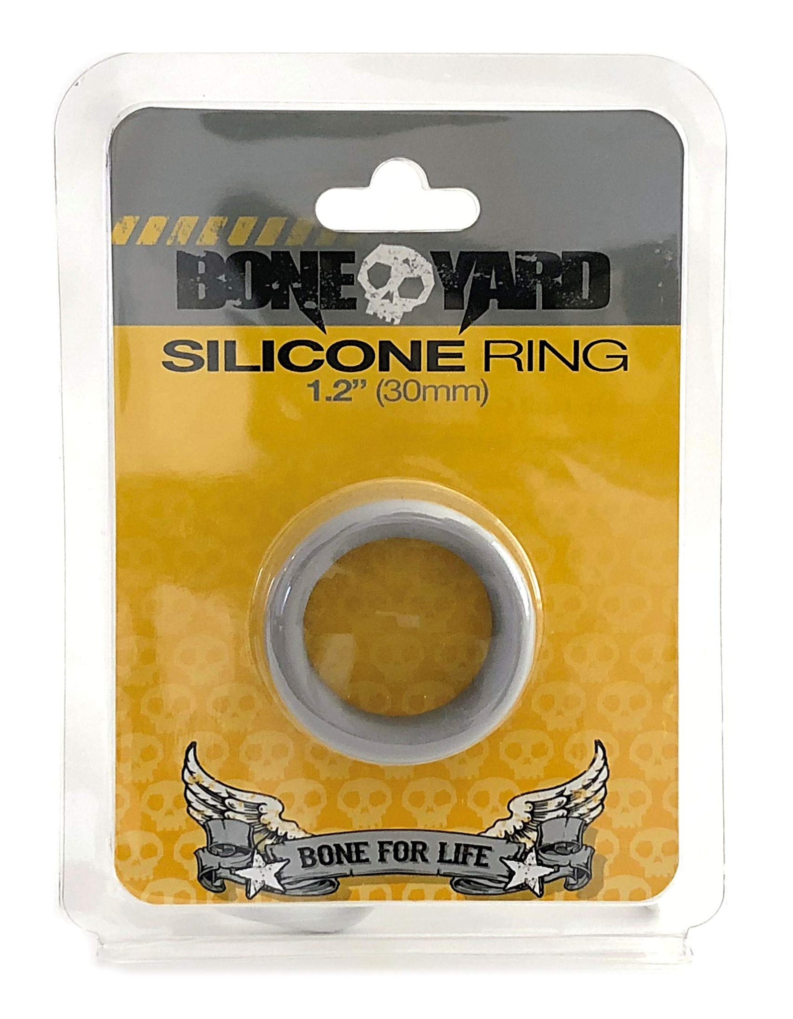 A: The Boneyard Silicone Ring measures 30mm in diameter, which is approximately 1.2 inches.