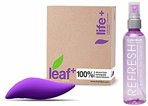 Q: What is included with the BMS Life Leaf vibrator?A: The BMS Life Leaf vibrator package includes the vibrator itself and a 4 oz bottle of Refresh Toy Cleaner for easy maintenance.