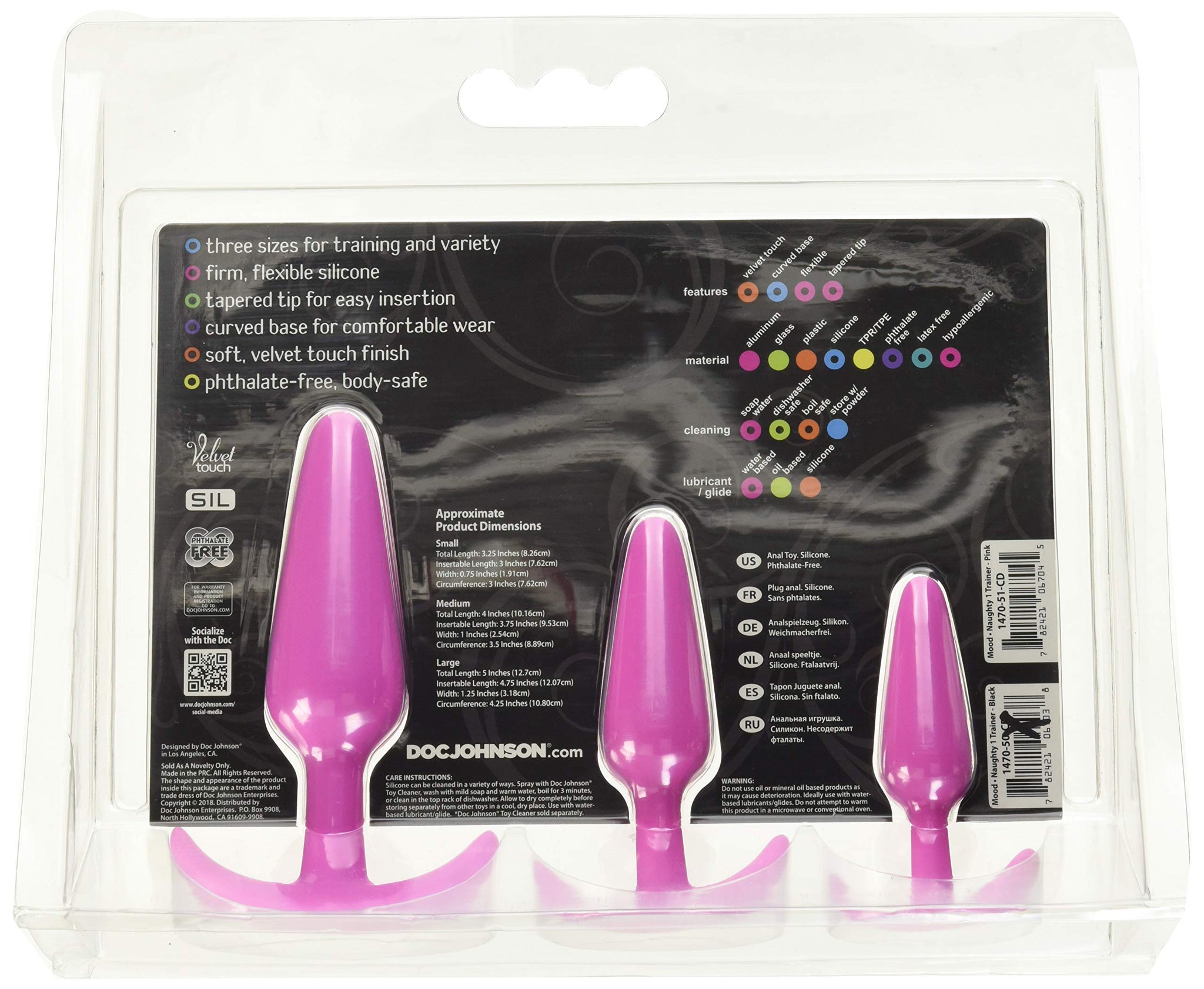 Q: What sizes are included in the Doc Johnson Mood Naughty 1 Trainer Set?A: The set includes three graduated sizes: 3 inches, 4 inches, and 5 inches.