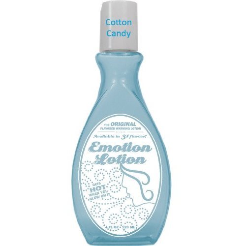 Emotion Lotion Cotton Candy 100ML LU238. Emotion Lotion is the worlds original flavored warming massage lotion. Still the #1 selling brand for 45 years! Made from completely edible ingredients. Gets warm when you rub it. Blow on it and it gets hot. Perfe