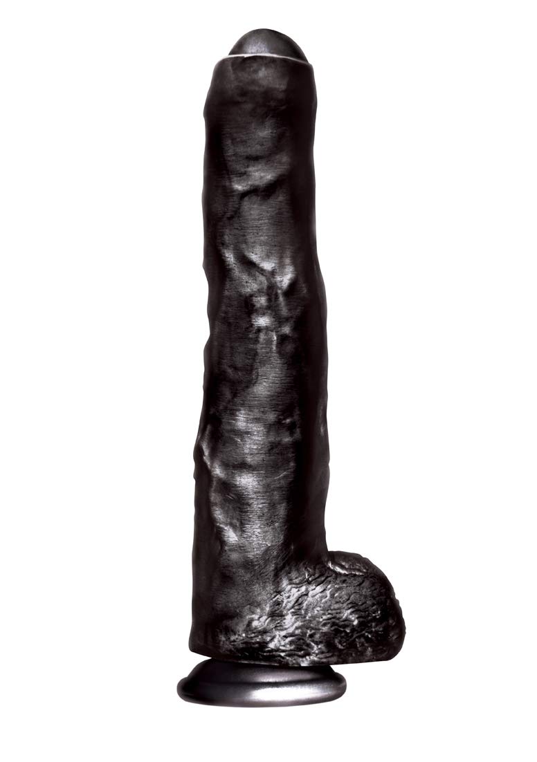 Icon Brands Falcon Big Black Cock Unkut 13.75 inches dildo. Uncut and uncensored. Suction cup base makes this item solo and partner play friendly. Just place suction cup on to any flat surface or with a partner for strap on play.