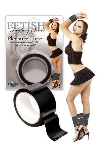Fetish Fantasy Series Pleasure Tape Black from Pipedream Products. Lets you put your lover in a sticky situation with this non-sticky bondage tape. This shiny PVC tape only sticks to itself, so it does not pull hair or leave any sticky residue. It is perf