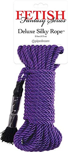 Fetish Fantasy Series Deluxe Silky Rope Purple 32 feet long from Pipedream Products. You do not have to be an expert to enjoy the pleasure of Japanese style bondage play when you use the super soft and silky Deluxe Silky Rope. It is ideal for those who si