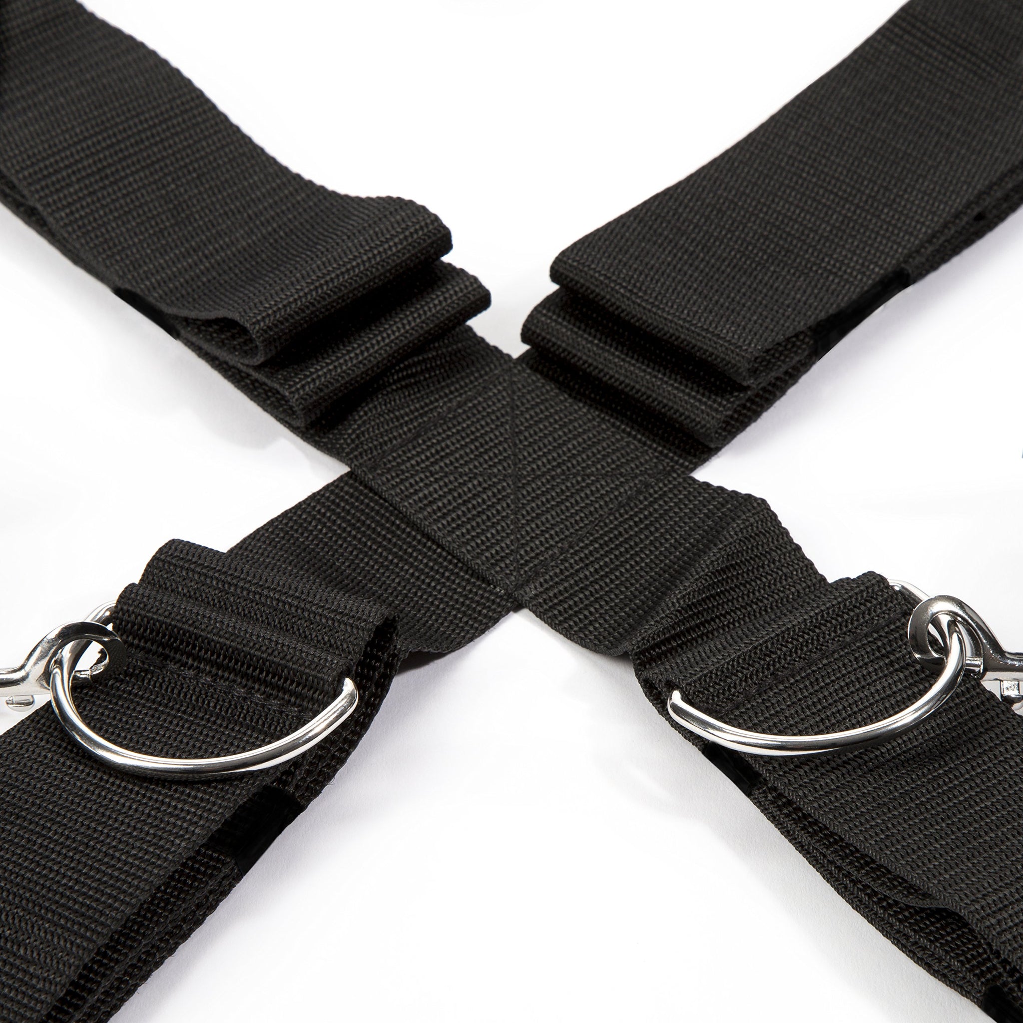 Fifty Shades of Grey Playroom Over the Bed Cross Restraints Silver from Lovehoney the sexual happiness people. Explore new styles of bondage game with this Bondage Cross, which allows you to position handcuffs and shackles, both vertically and horizontall
