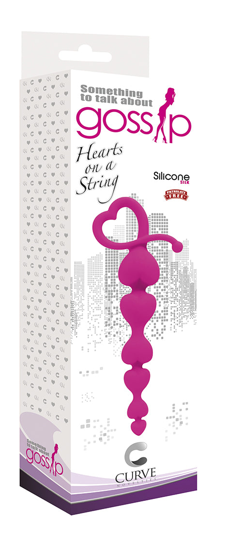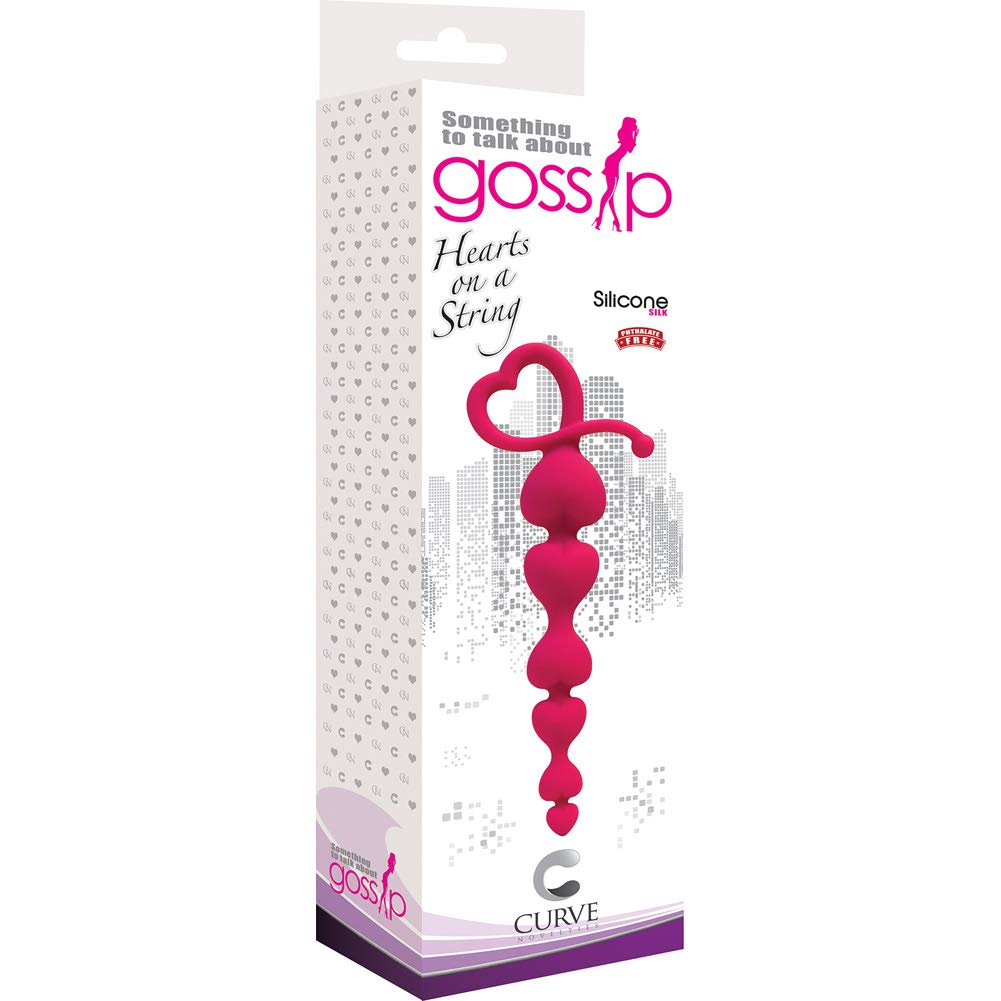Q: What are the dimensions of the Gossip Hearts on a String Dildos?A: The Gossip Hearts on a String Dildos measures 7.25 inches in total length, with 5.5 inches being insertable and a width of 1.125 inches.
