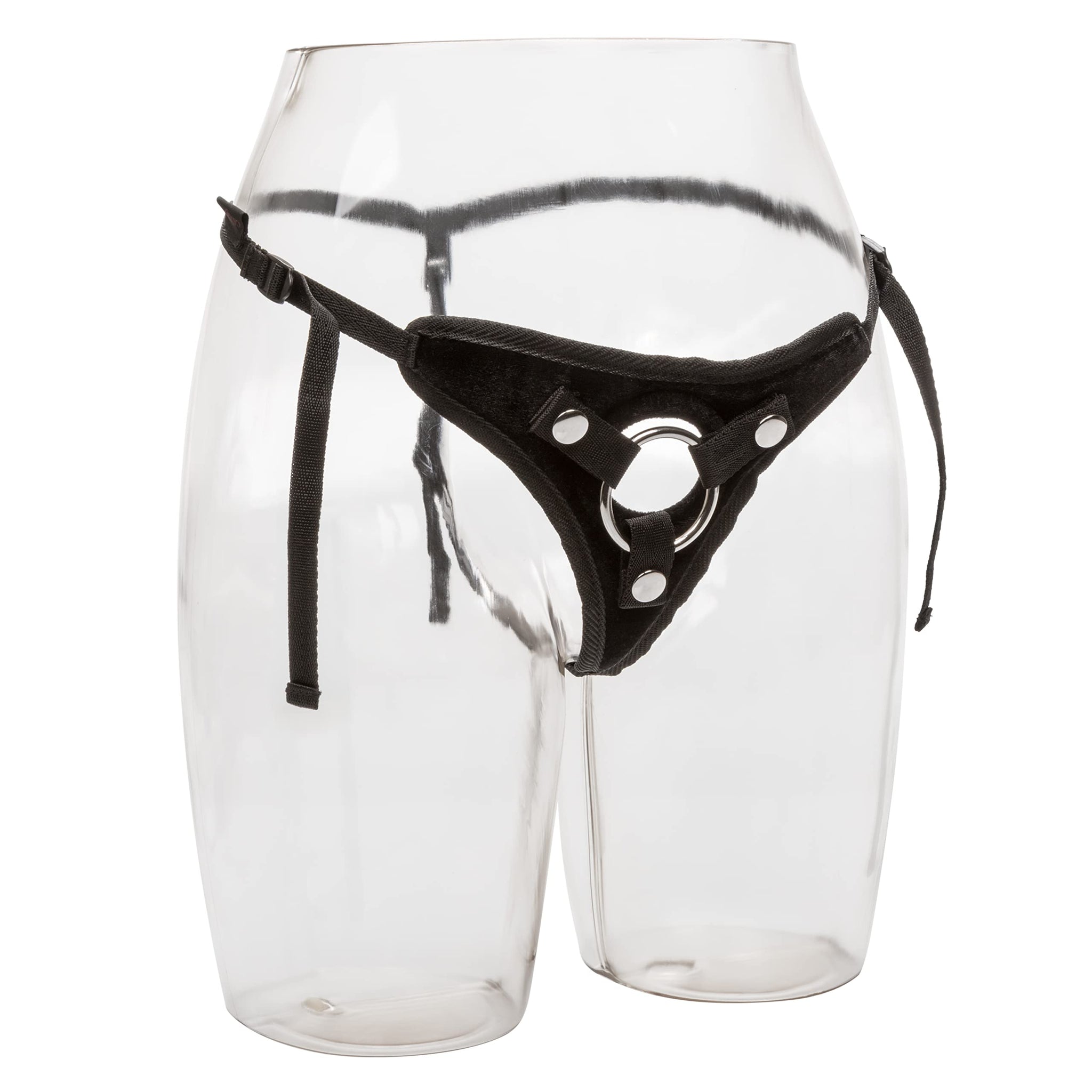 Her Royal Harness Princess from Cal Exotics. One size fits most. Adjustable. T back strap on with metal o-ring. Color Black. Universal clasps make this a versatile bedroom accessory. Non-tarnishing and nickel free, this product is safe and worry free. Cla