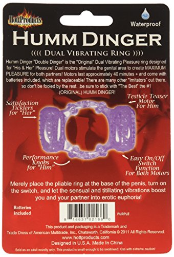 Q: What is the Hott Products Humm Dinger Double Dinger?A: The Hott Products Humm Dinger Double Dinger is a dual motor penis ring designed to enhance pleasure for both partners during intimate moments.