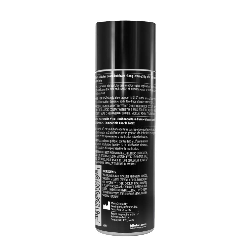 ID Silk Personal Lubricant Silicone and Water Blend. Natural Feel. Enjoy the ease of a water based lube with the slickness of a silicone lube with ID Silk! Slippery and smooth, non-tacky and long lasting, ID Silk effectively blends the best qualities of b