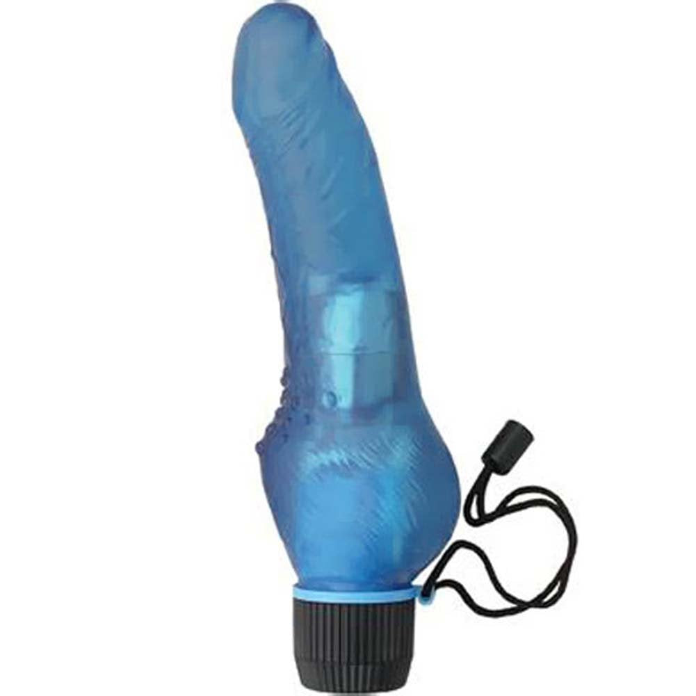 Jelly Caribbean #3 (Blue) The classic Jelly Caribbean series continues in this crystal-clear pink 8 inch soft jelly vibe that warms to the body. Waterproof to use in or out of the water, with an attached to string to hang at your convenience. Easy to use multi-speed control at your finger tips. Requires 2 AA batteries, not included.