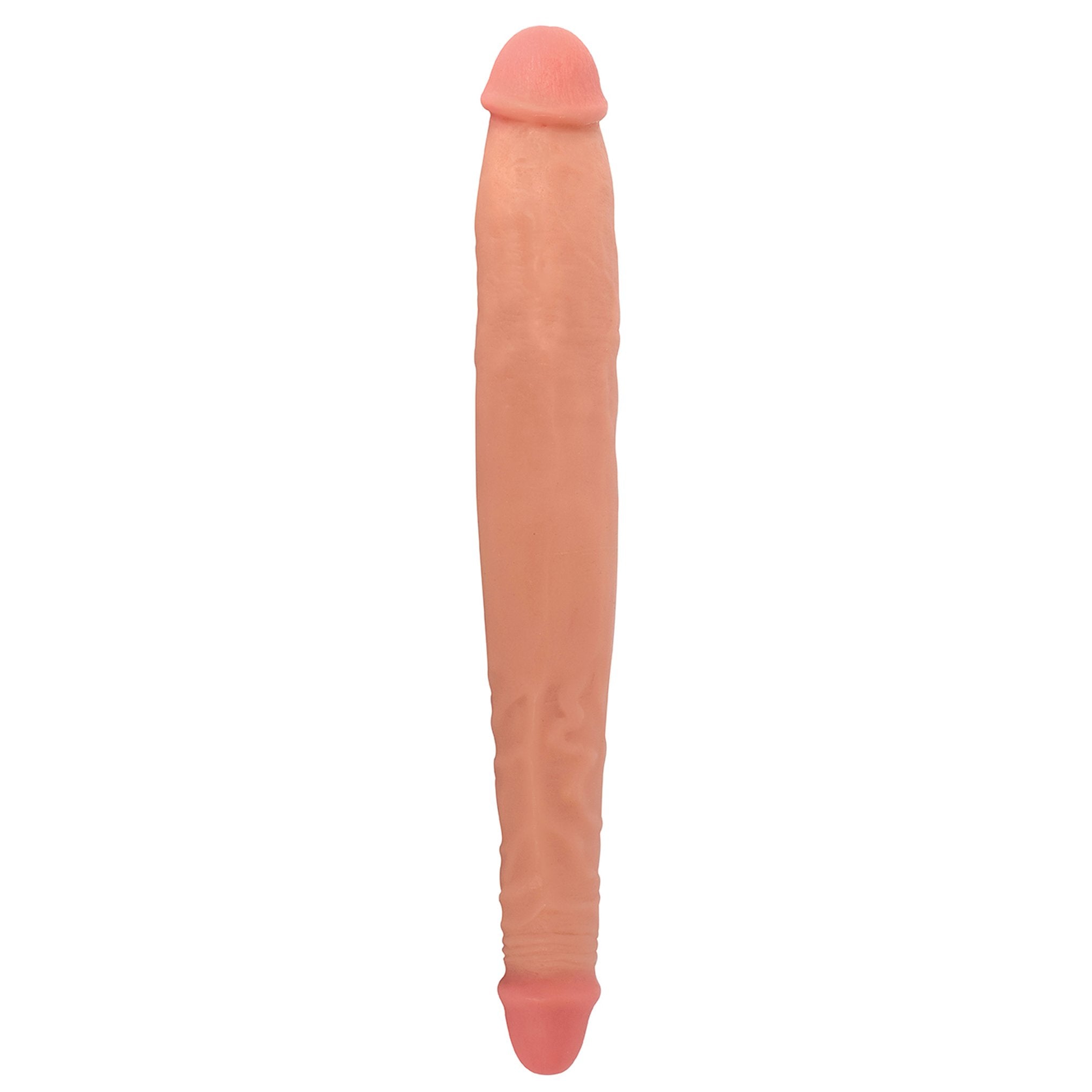 Q: What are the features of this double-ended dong?A: Key features include a realistic double cock head, firm yet pliable material, extra long length, and two head sizes to choose from.