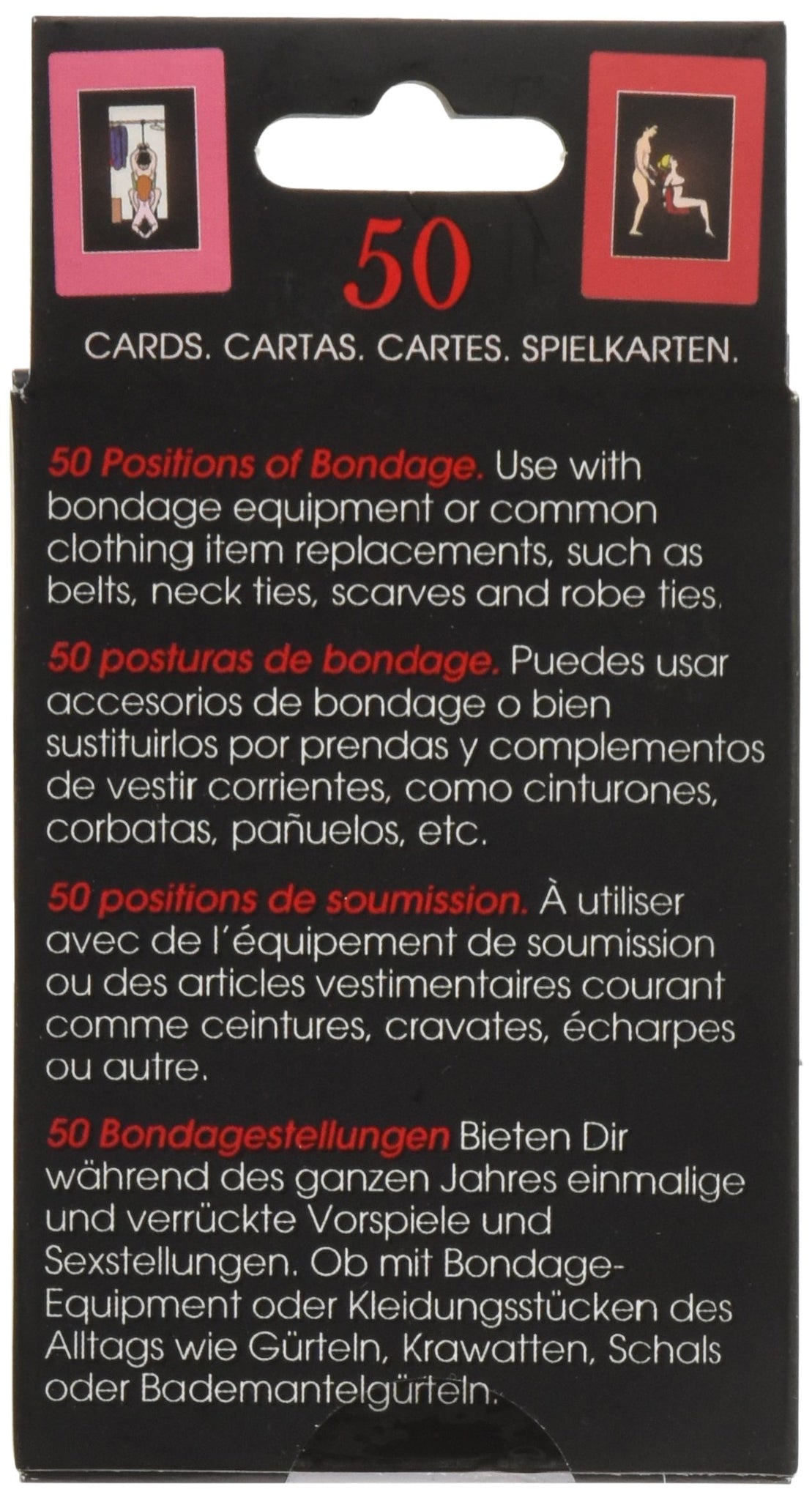 Q: What materials is the game made of?A: The Kheper Games 50 Positions Of Bondage Game does not specify particular materials, as it primarily consists of cards or instructions for the positions.