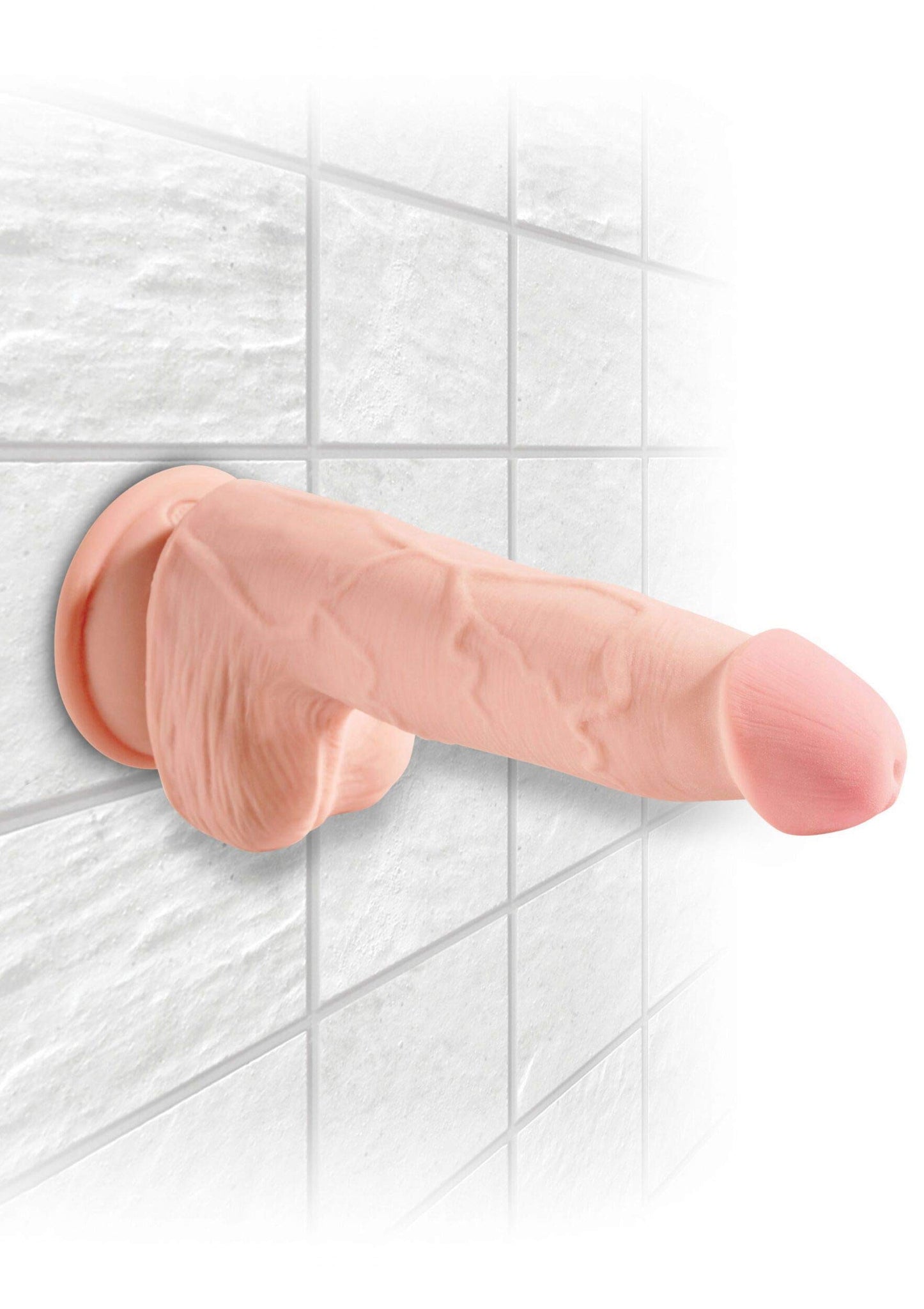Q: How does the suction cup base work?A: The powerful suction cup base allows you to securely attach the King Cock Plus to flat surfaces for hands-free enjoyment.