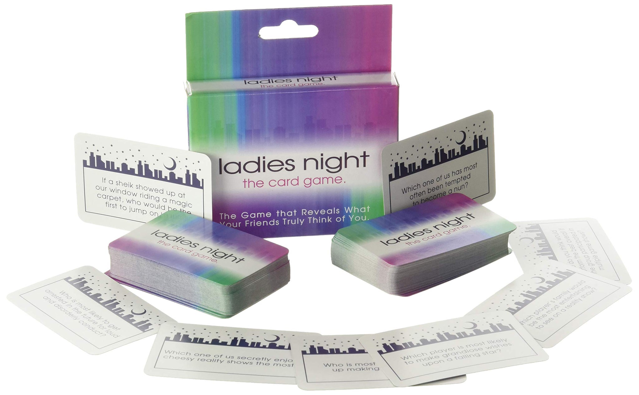 Ladies Night the Card Game from Kheper Games. The game that reveals what your friends truly think of you. Shuffle the cards and players then take turns selecting cards and reading questions aloud. The group votes on the player that best fits the answer an