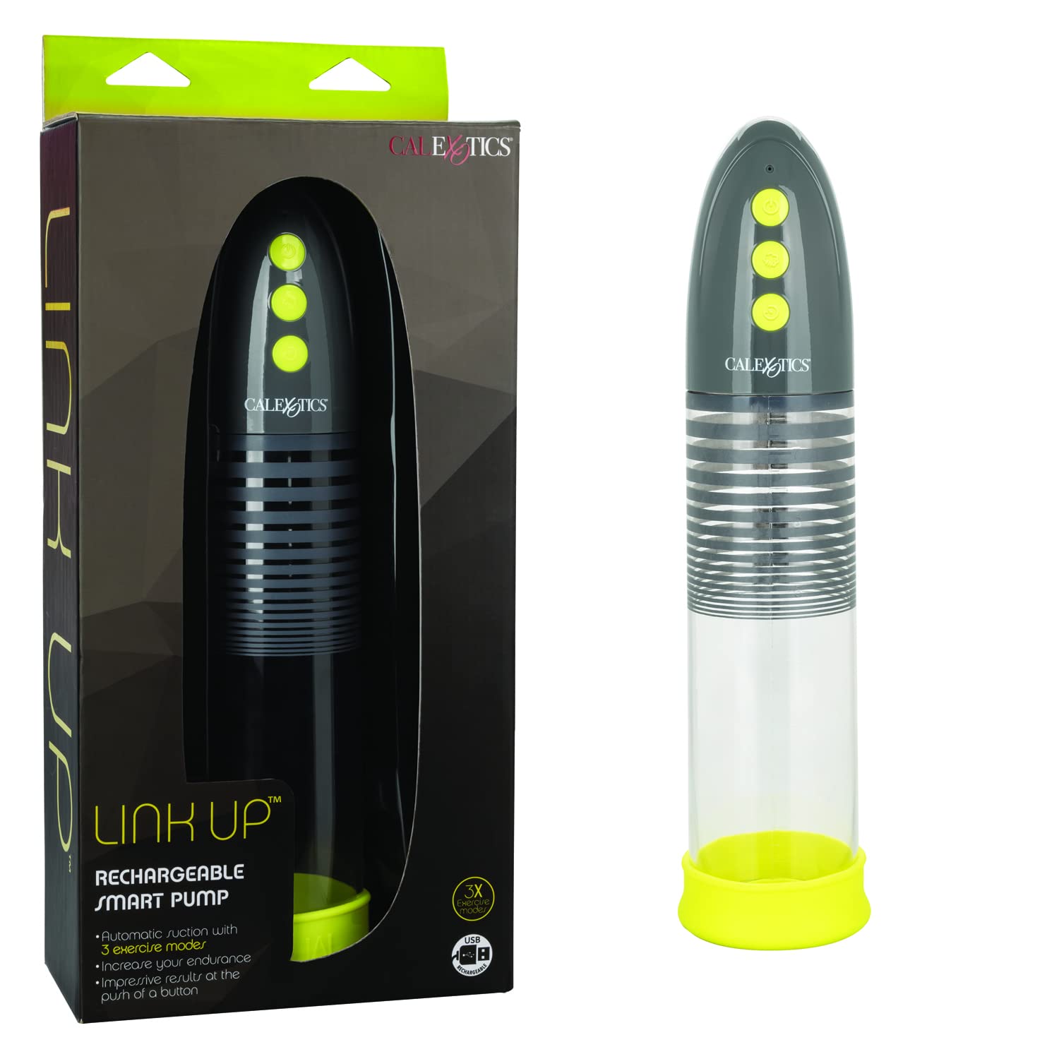 Link Up Rechargeable Smart Pump from California Exotic Novelties. Maximize your pleasure tool with the Link Up Rechargeable Smart Pump, a sleek, durable penis pump made for superior suction and performance enhancement. Increase endurance, improve stamina
