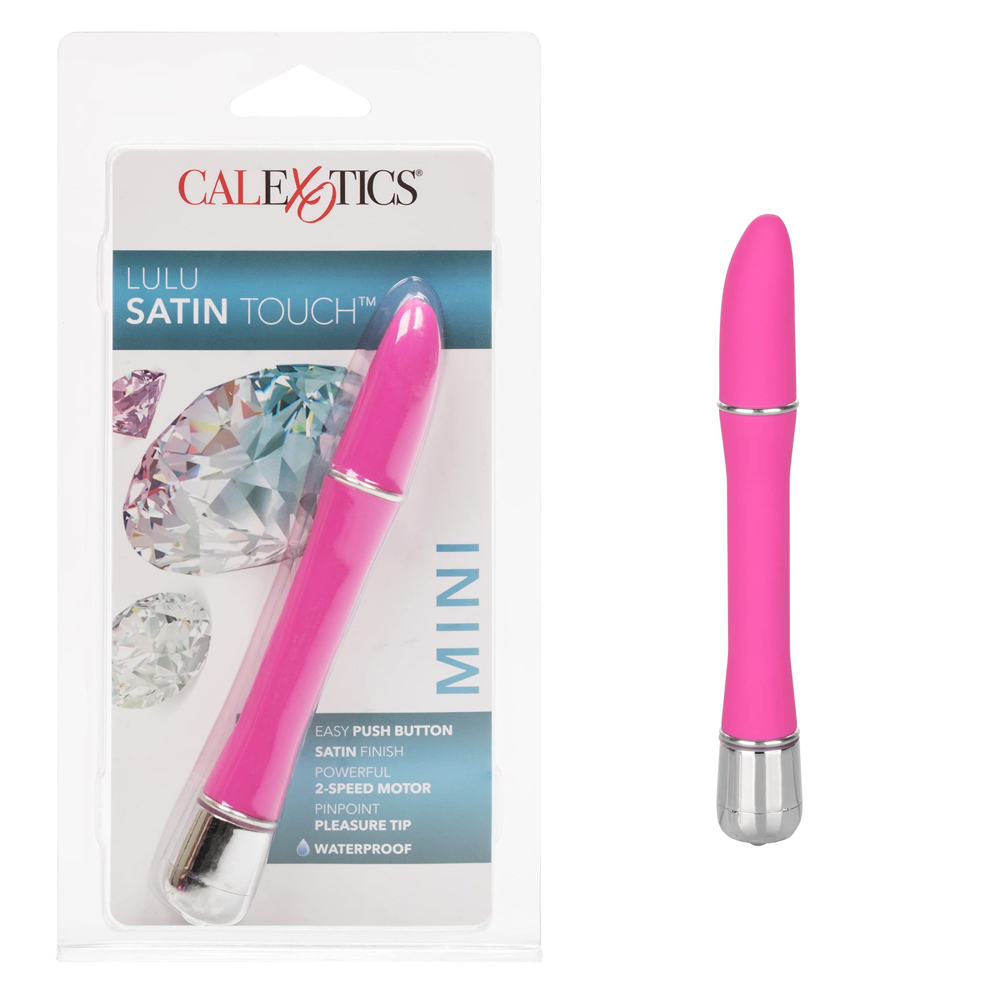 Lulu Satin Touch Pink Vibrator is an intensely powerful sex toy. Satiny soft, slender, and discreetly sized personal massagers with pinpoint tips. Easy to operate push button controls. Waterproof for play outside the bedroom. 2 speeds of vibrations. Class