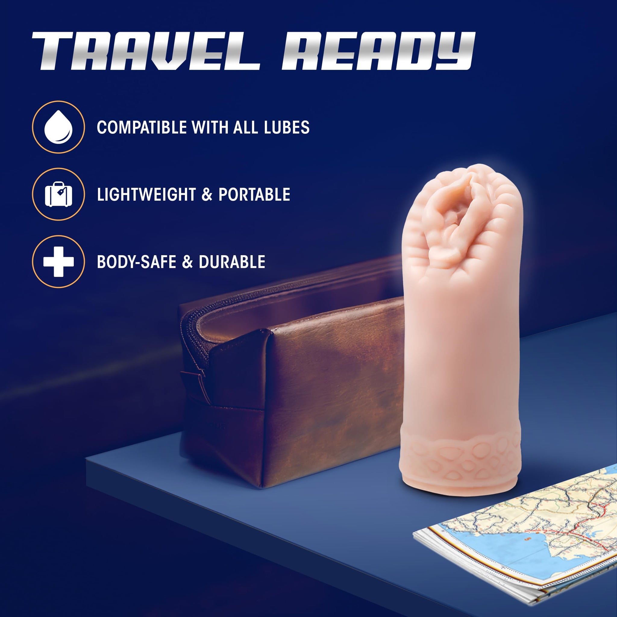 M For Men Sexy Snatch Masturbator Beige from Blush Novelties. For the man on the go, dont forget to grab this sexy snatch this before you head out! With its stretchy, sensuously soft, realistic feel and a row of 5 pleasure beads in the ribbed canal, all