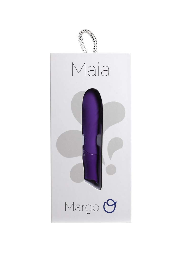 Margo USB Rechargeable Silicone 10 Function Textured Bullet Vibrator Neon Purple from Maia Toys. Small in size but big on power, the Maia Novelties Margo is your go anywhere toy. Use Margo as a straight vibrator or to replace your favorite bullet. Margo f