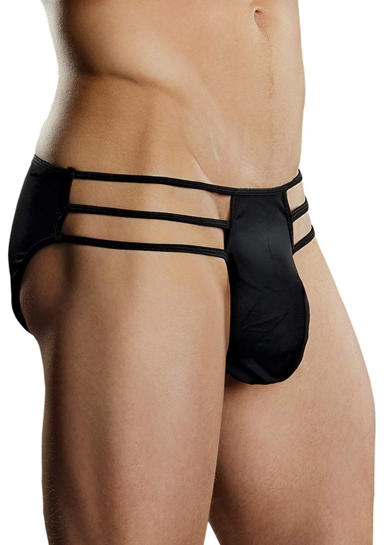 Cage Briefs with strappy cage side in nylon, lycra. One size fits men large to extra large. Great thong underwear gift for bridal showers, anniversaries, bachelor parties and more! Male Power is a division of Magic Silk. Male Power underwear for men, brie