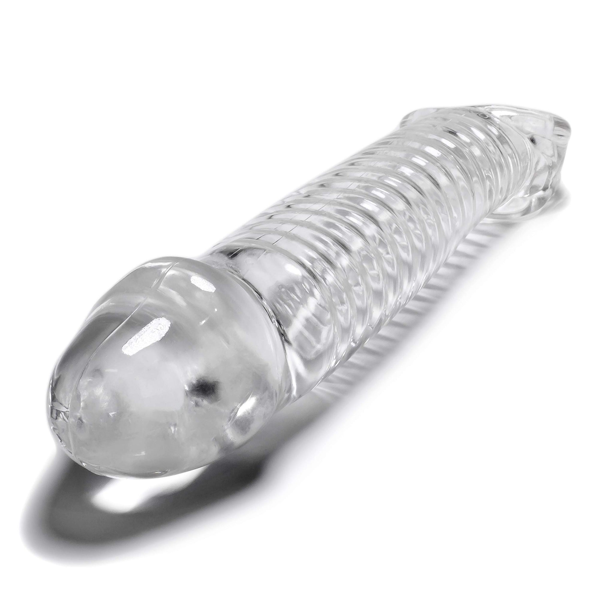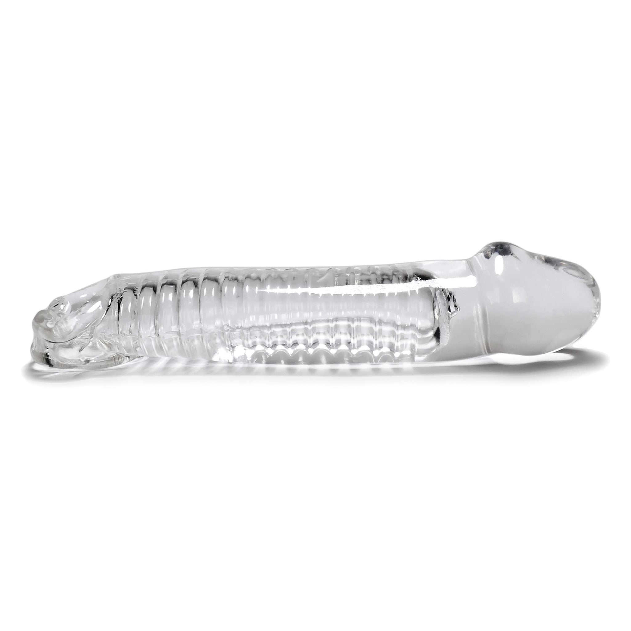Super Soft Flex-Tpr Cock Sheath Has Soft Ridges That Add Massage Sensations. For A Tighter Fit A Small Silicone Stopper Locks Into The Grooved Indents At Whatever Length Suits You. Measures 9.25 In. Long 8 In. Insertable With A Circumference Of 6 In.