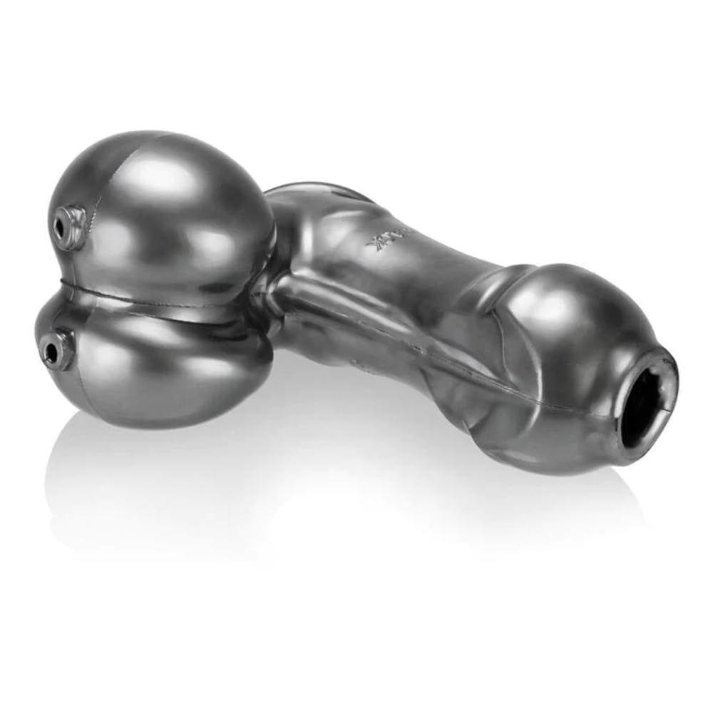 Made of signature Flex-TPR this ball sling and masturbation toy has an opening on the end. The inside has a ribbed ring designed to grip balls and keep them down. There are two openings on each nut for drainage or to allow electric leads. Shaft length is 5.5 in.