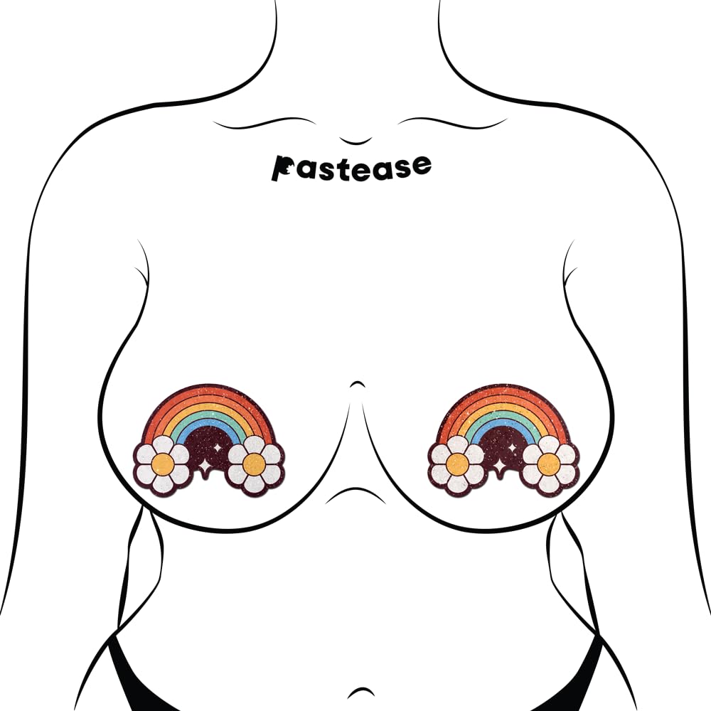 Introducing our Rainbow Flower Pasties by Pastease - the perfect accessory for adding a touch of instant happiness to your festival wardrobe! Crafted from luxuriously soft glitter velvet material, these pasties offer both comfort and style.