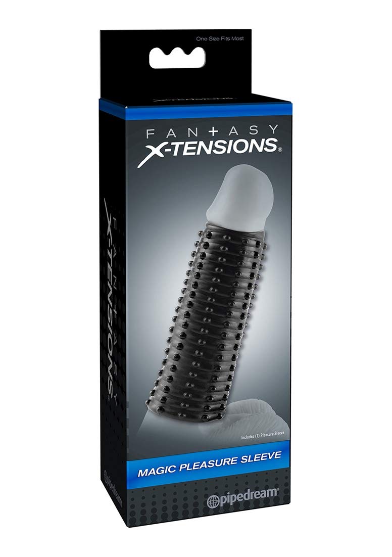 Q: What is the Pipedream Fantasy X-Tensions Magic Pleasure Sleeve?A: The Pipedream Fantasy X-Tensions Magic Pleasure Sleeve is an erection enhancer designed to increase thickness and length, providing enhanced pleasure for both partners during intimate encounters.