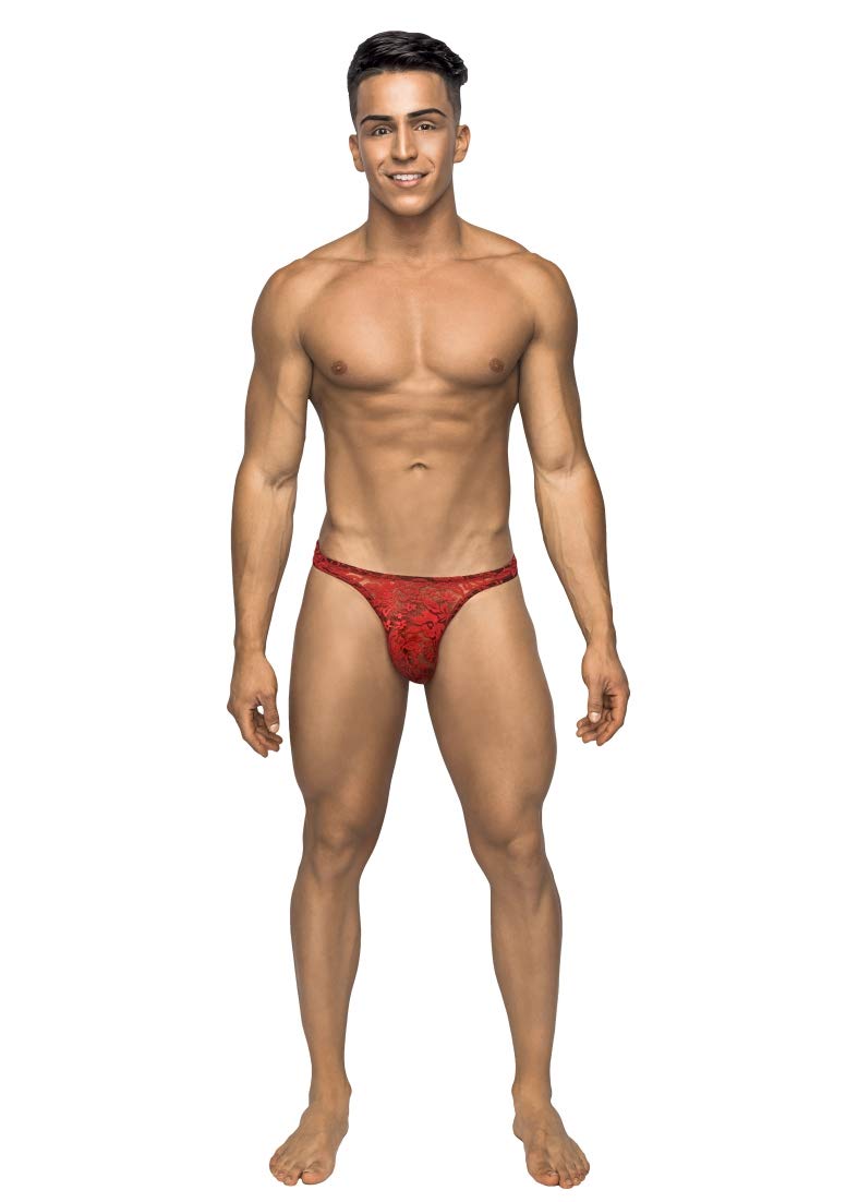 Posing Strap Stretch Lace Red O/S from Male Power Underwear. Blur the lines of masculinity when you step into this Stretch Lace Posing Strap. The soft floral lace is enhanced by the comfort pouch and classic back to ensure pleasure. It does not matter if