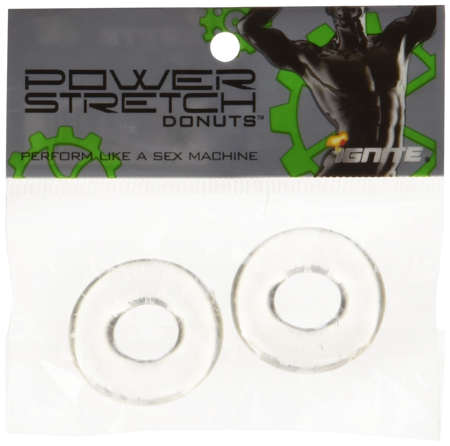 Si Novelties Ignite series Power Stretch Donuts 2 Pack Clear. Rings for men, cock rings for prolonging male climax. Perform like a sex machine.