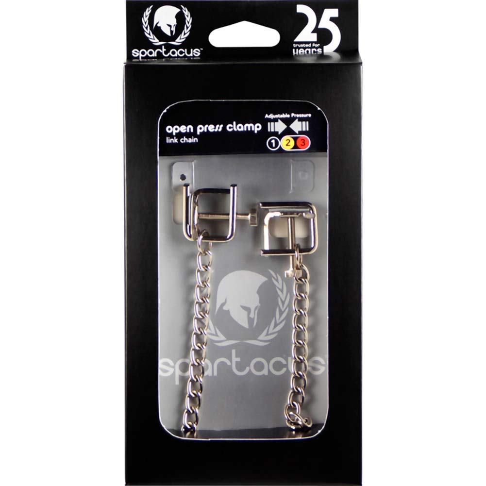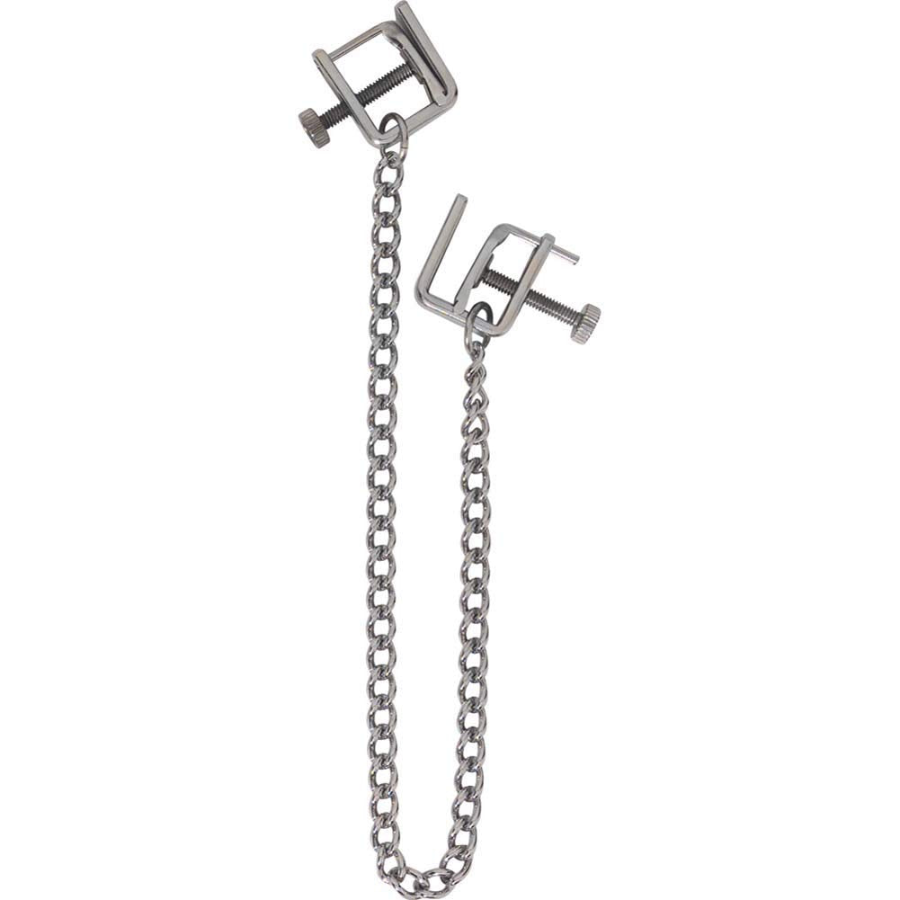 Adjustable Press Nipple Clamps with Link Chain. Once only offered as a bulk product, now these nipple clamps come from the Extreme Line packaged products. Adjustable nipple clamps offer a range of pressures, for a variety of sensations. A good fit for pra