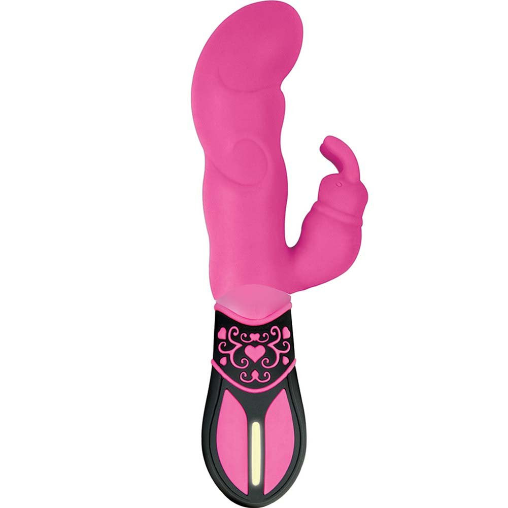 Ravishing Rabbit Lover Pink Vibrator features 10 functions, 100% Silicone. Soft and smooth surface. EZ control base. Waterproof vibrations. Made using phthalate free, RoHS compliant materials shaft Silicone, base ABS plastic. Total length 7.75 inches,