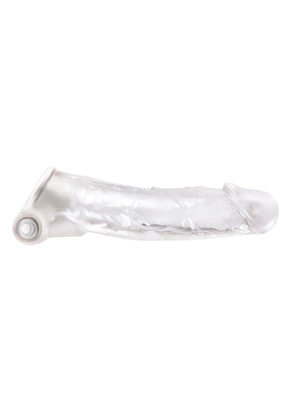 Q: What features enhance the stimulation provided by the Renegade Manaconda Clear?A: The extension features a strong bullet vibrator at its base for maximum stimulation and a snug ball-drop design that cradles and locks the sleeve in place.