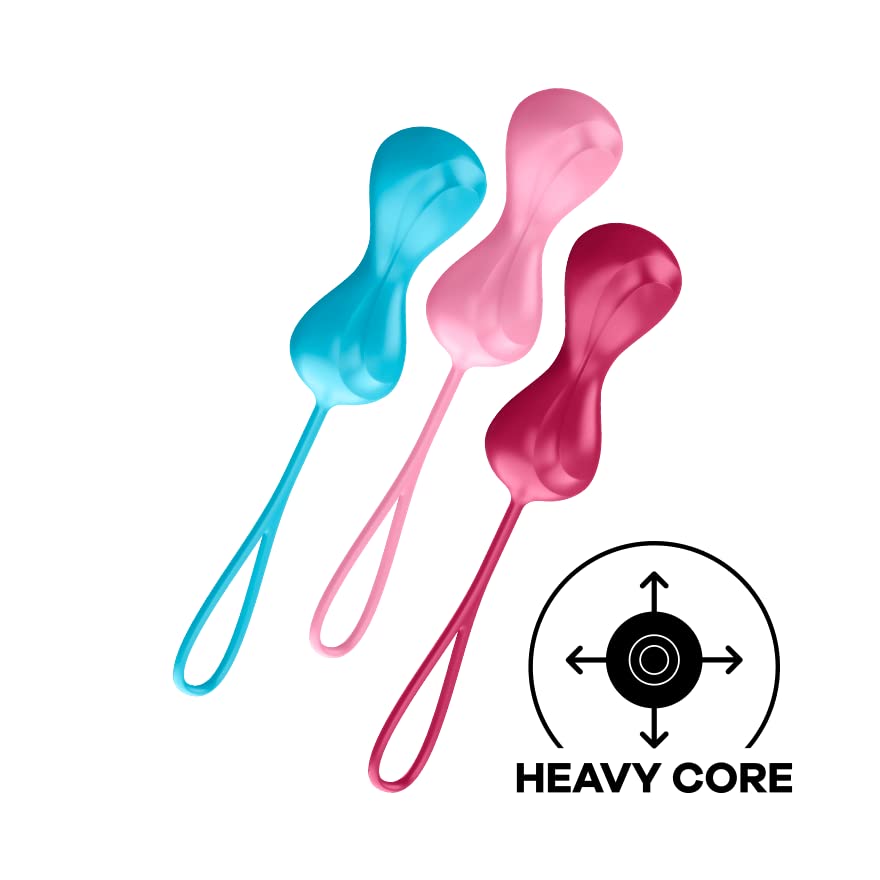 Satisfyer Balls C02 Double Set of 3 Assorted Colors. Kegel exerciser can help train you PC muscles. Start with the smaller Balls and move on up to the larger weights. Great for helping restore muscles used during child birth. Made from body safe, latex fr