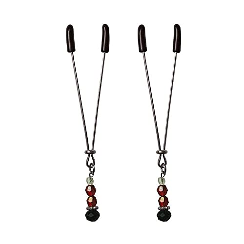 From Sportsheets Sex and Mischief line Nipple Clips Ruby Black tweezer style clamps. New to nipple play? These Nipple Clamps are perfect for the beginner. Easy to adjust pinch. Rings slide down the shaft of the tweezer like clip for as snug as you like s